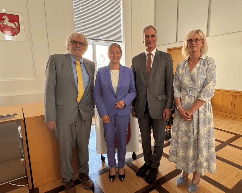 Beitragsbild: Während der Feier waren der ehemalige Leitende Oberstaatsanwalt Dirk Amthauer, Justizministerin Kathrin Wahlmann, Generalstaatsanwalt Detlev Rust und die aktuelle Leitendes Oberstaatsanwältin Claudia Becker-Kunze zu gegen. Foto: Staatsanwaltschaft Braunschweig
